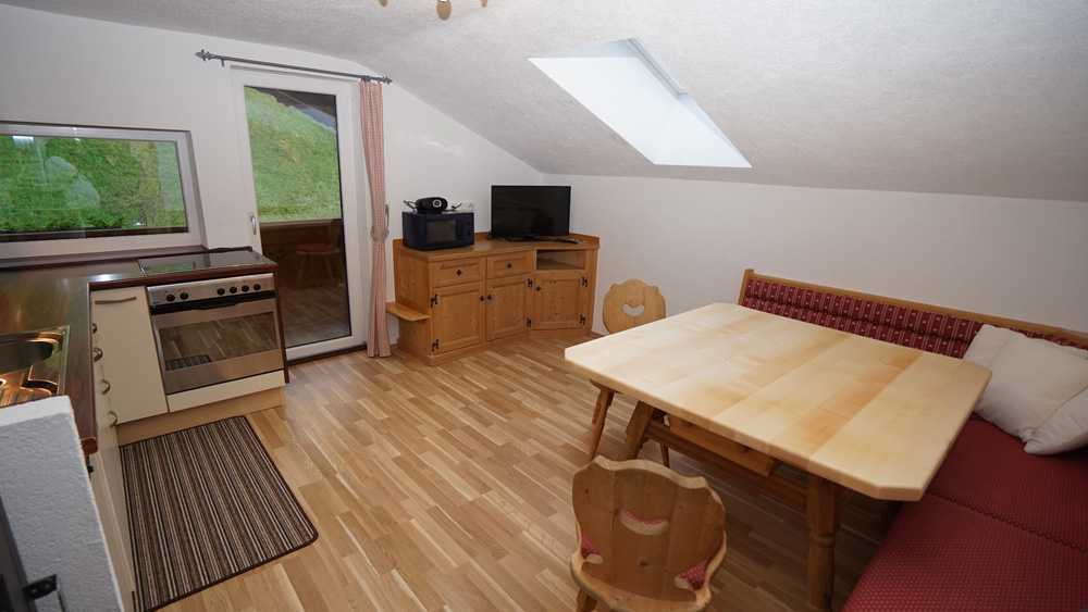 Unser Ferienwohnung wurde im Frühjahr 2015 komplett neu saniert und eingerichtet. Ihnen steht eine geräumige, komplett ausgestattete Wohnküche mit Mikrowelle, Geschirrspüler, Wasserkocher, Kaffee- maschine,Herd, Kühlschrank, Holzofen, Radio, SAT-TV, usw. zur Verfügung. 2 Schlafzimmer mit Doppelbett, sowie in einem Zimmer Zustellbett möglich (3-Bett-Zimmer) Schlafzimmer sind ohne Teppichböden ausgestattet 1 Badezimmer (Bad/Dusche - WC)